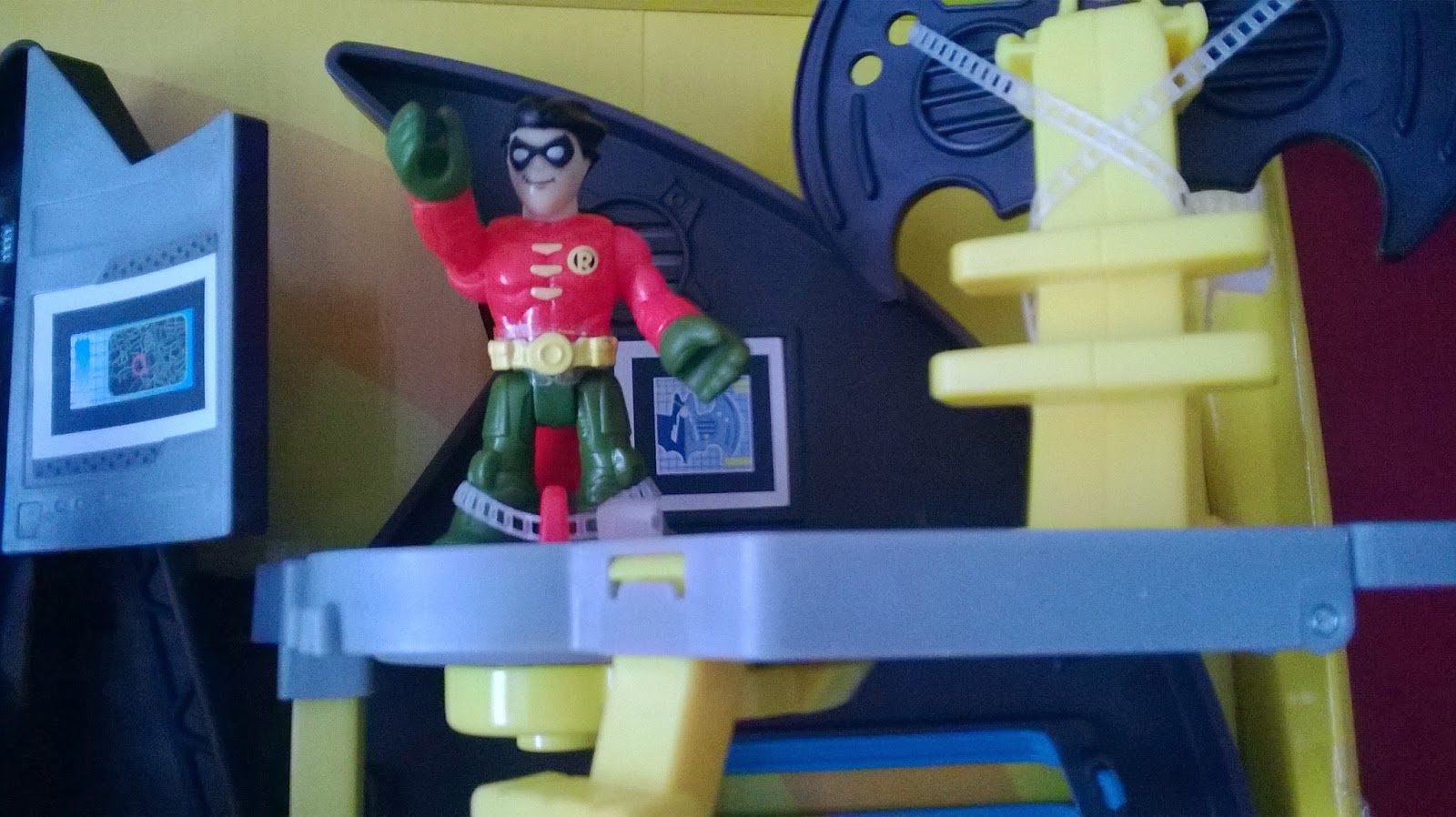 Check out the New Batcave from Imaginext! With Batman, Robin and even a bat cycle to play with your child is sure to have a tone of fun! Batman can slide down the Batpole, leave on the rotating walkway and even has a Batwing!